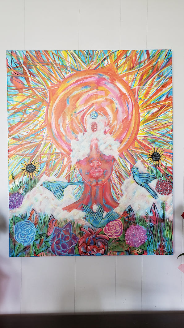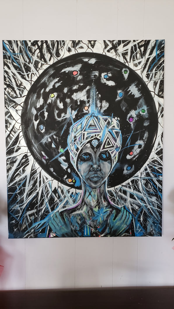 For me, my paintings are fragmented perspectives of the soul, life, and consciousness. Like pieces to a larger puzzle meant to intrigue and invite you to look a little deeper within, dream a little bigger, and see more meaning in life. To showcase how we're all connected and one in the universe. That all lives are beautiful and matter. Its important that we cherish and enjoy every moment. Whether in the light or darkness, life will always blossom into something greater if we wish it too.